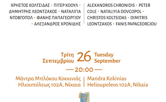 ΠΡΟΓΡΑΜΜΑ Στους μικρόψυχους καιρούς ένα σπουδαίο, διεθνές λογοτεχνικό γεγονός που αφουγκράζεται τις αγωνίες του πλανήτη Στο 9ο Διεθνές Φεστιβάλ Ποίησης Αθηνών του Κύκλου ποιητών, 51 ξένοι και Έλληνες ποιητές από 13 χώρες ερμηνεύουν τον κόσμο μέσω της ποίησης και διαβάζουν ποιήματά τους σε επτά σημεία των Αθηνών και του Πειραιά. […]